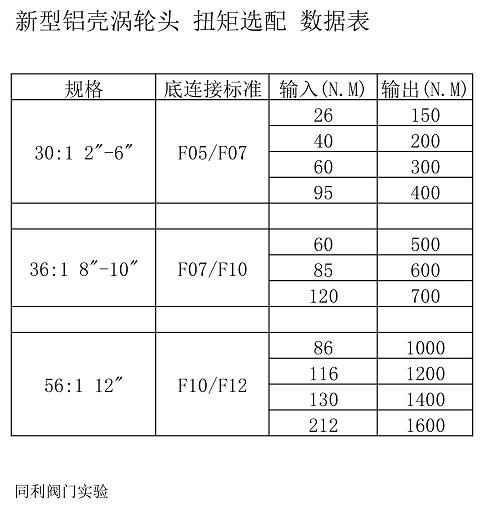 新型鋁殼渦輪頭 扭矩選配 數(shù)據(jù)表