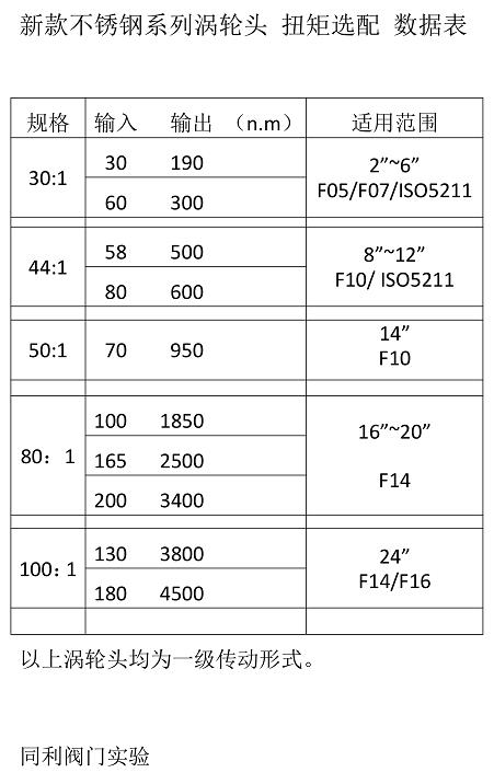 新款不銹鋼系列渦輪頭 扭矩選配 數(shù)據(jù)表